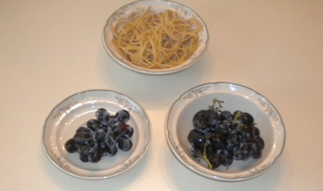 In the picture above you see two bowls of grapes. The one on the left has the recommended quantity for one serving (about 17 grapes). The one on the right has “oh, a few more than that”, at least thats how it looks. The reality – it has exactly twice as much. And double the calories. But does your dietary regimen say to have two snacks that hour?