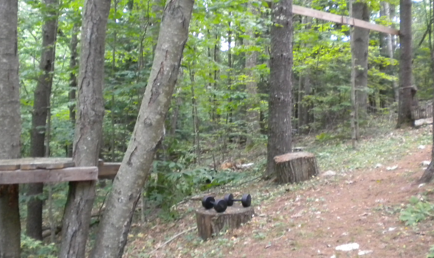 * Take it outdoors and design something like my own pictured above. I run a 1/4 mile course through the woods (and up a big hill) carrying 30lb dumbells. Halfway thru I pause and do 10 snatches with the weights. Then run the rest of the course carrying them. Its a killer.